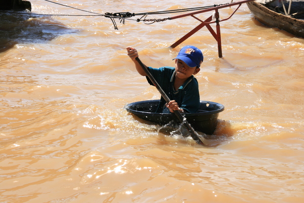 這麼小的孩子無法享受童年,而跟在母親身邊~~只要看到遊客的船出現就趕緊圍了上前,