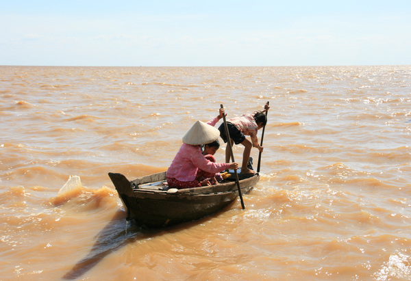 洞里薩湖不虧是東南亞第一大淡水湖,遙望遠方就像是海一般無邊無際,為了避免船隻睡上一覺後隔天不曉得會飄到哪兒去,