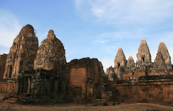 三層平台,一層疊一層,最下一層是50公尺正方平台,最上層平台上聳立五座尖塔。四座較小,位於四方,中央最大一座象徵須彌山主峰。後來的吳哥寺廟,都在這個基礎上擴充。