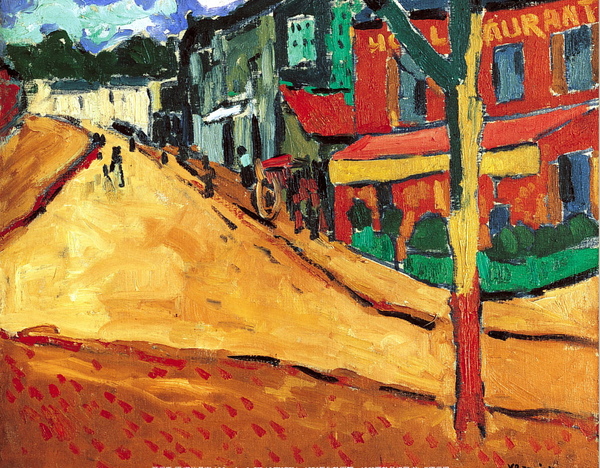 用色超大膽、畫法也是粗獷有勁,這幅就是【莫里斯‧德‧甫拉曼克】所畫的【馬利-勒-瑞伊的一條路】。