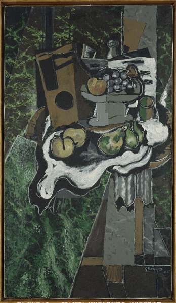 【喬治‧布拉克】的【桌布上和高腳盤裡的水果】在我看來很有重金屬樂團的FU啊~~