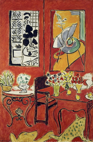這幅畫是野獸派大師【亨利‧馬諦斯】室內系列作品的最後一件--【大幅紅色室內景】。