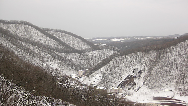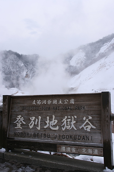 加上登別是個溫泉鄉,所以到處都是霧朦朦的一片,我好想走到那端的步道逛逛喔,嗚~時間~~