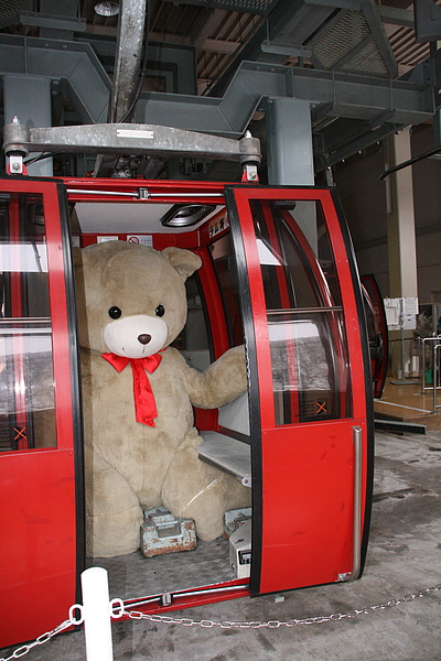 所以在所有的纜車之中是有一台放了這麼一隻霹靂無敵大的熊寶寶說,