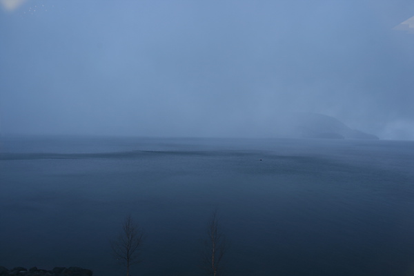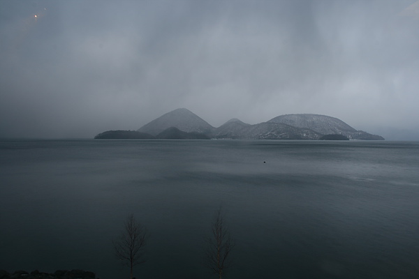 前一晚,我們住在洞爺湖畔,房間直接就可以看到廣闊的湖面,