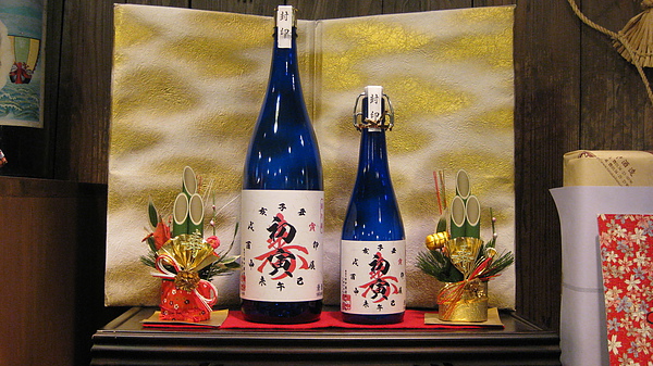 因為剛好碰上新年,自然也就有特別的紀念酒囉,然後幫很多漫畫或卡通都會出現的大吟釀拍個照,嘻嘻。