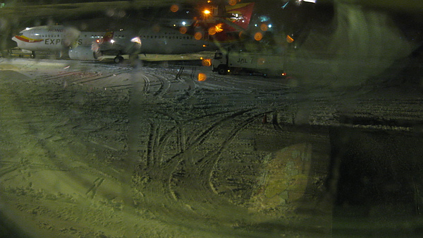 果然飛機延遲了,現在還在【仙台】(我應該沒記錯吧?囧rz)那裡等風雪變小才能飛來接我們回家。