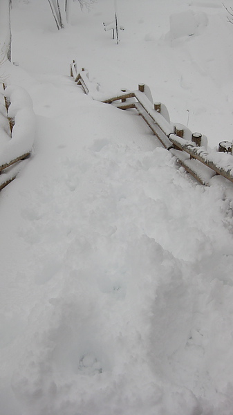 四周也都是雪,平滑的像是蓬鬆大棉被的那裡,也是樓梯喔!