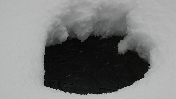 我在想、它下面是不是有走熱氣的管線,所以當雪落在上頭的時候才會快速融化,