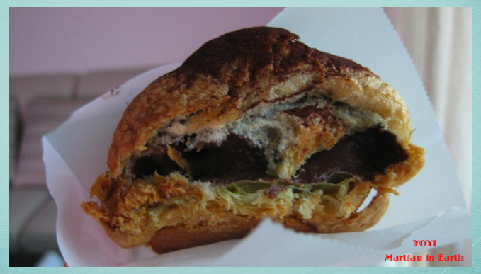 另一個則是巧克力口味,它就比較有誠意多了,餡料滿滿的,