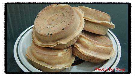 這已經是回到家,車輪餅軟掉後稍微用烤箱烤過後的樣子,